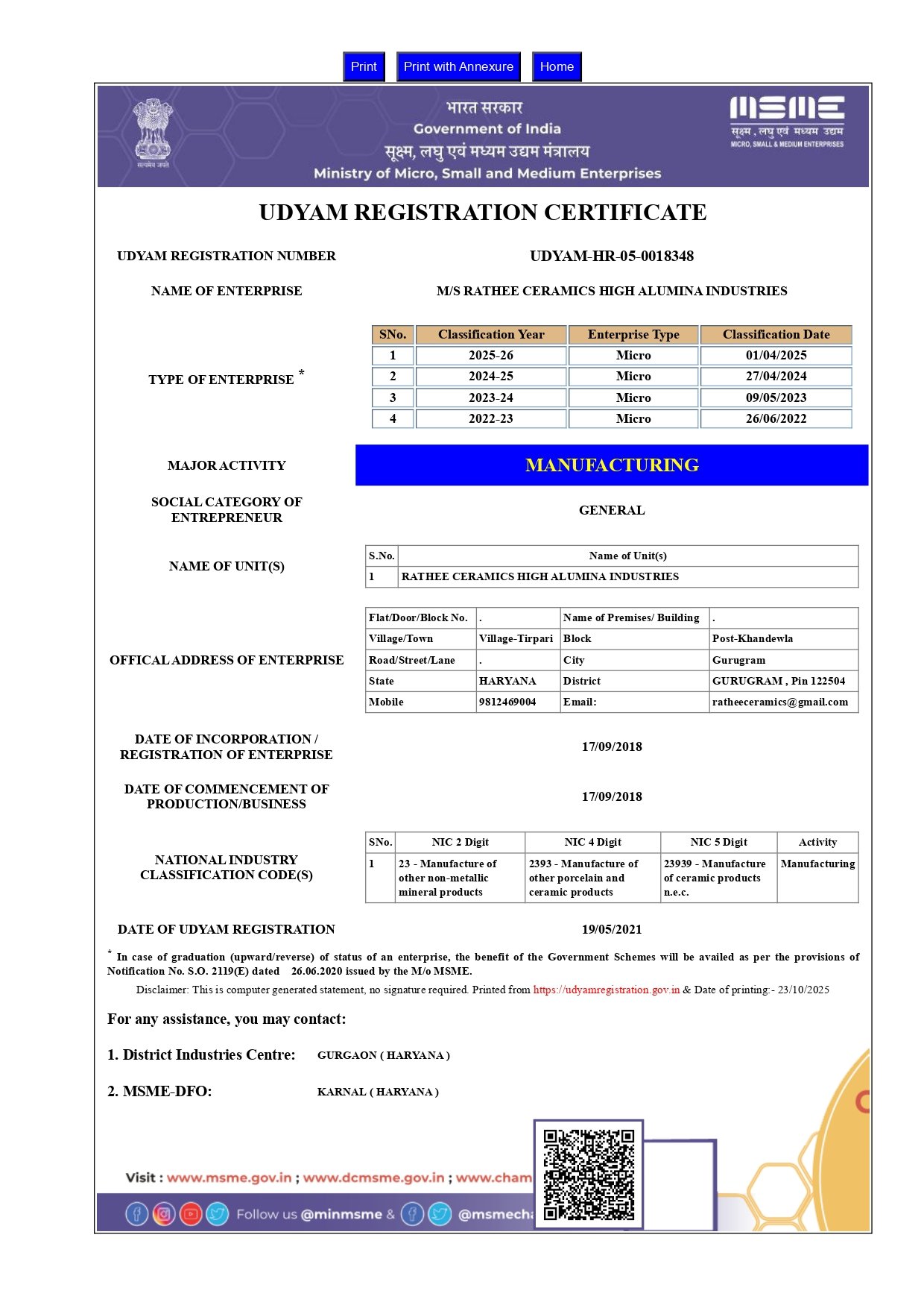 With regards, Rathee Ceramics High Alumina Industries
